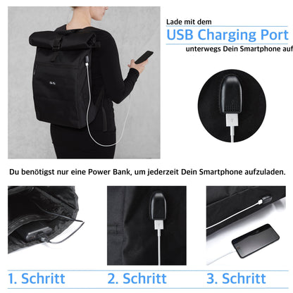 Handy leer und nicht zu Hause? Mit dem integrierten USB Charging Port kannst Du ganz einfach Dein Smartphone mit einer Powerbank verbinden und Dein Akku hält den ganzen Tag durch.